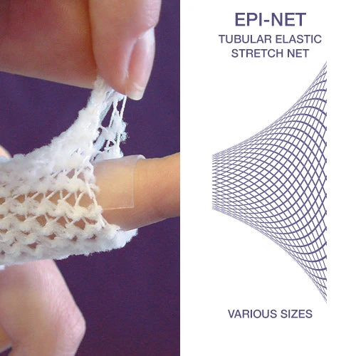 Epi-Net is a tubular elastic stretch net designed to serve as a secondary dressing to hold Epi-Derm in place.